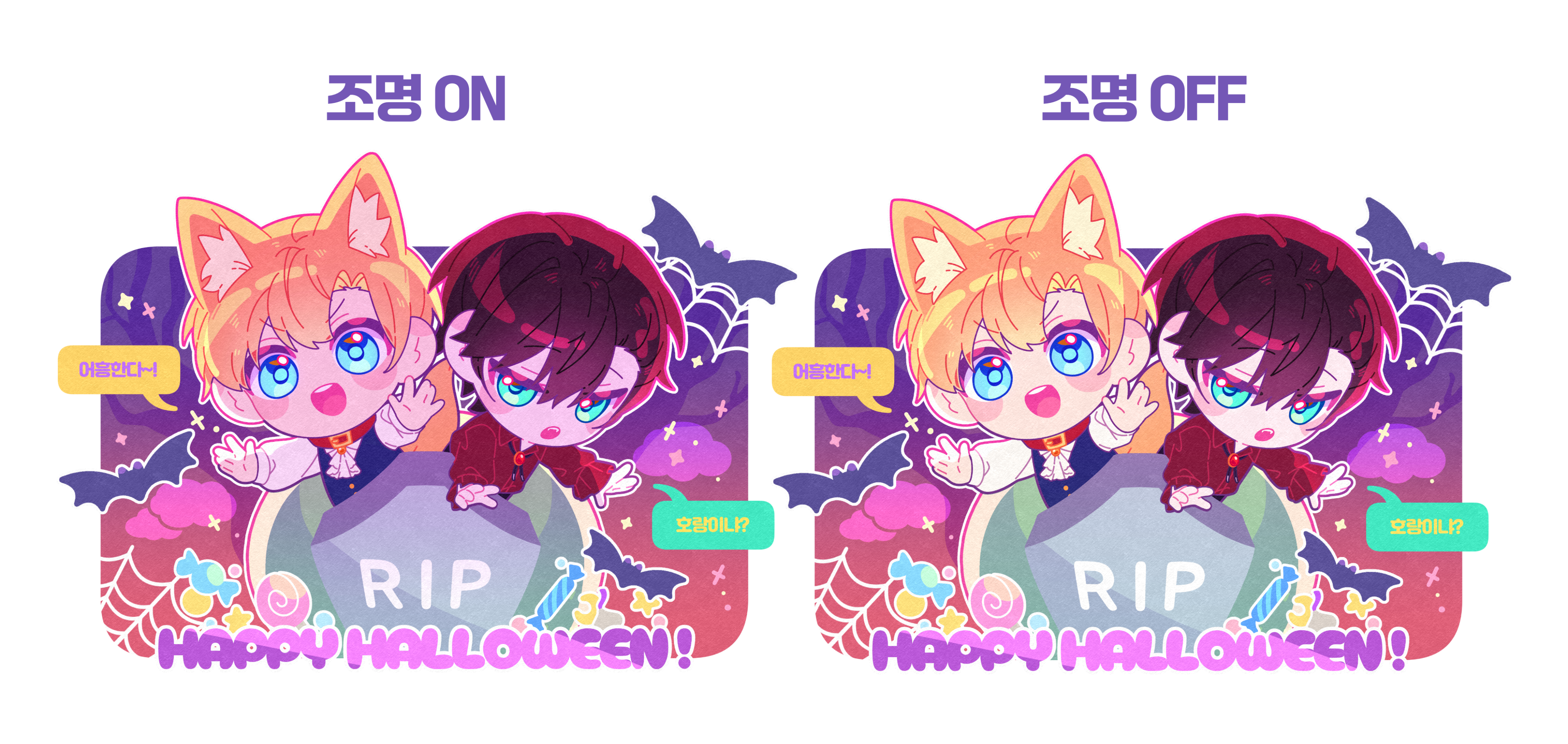 캐릭터 조명이 있는 버전, 없는 버전, 캐릭터 단독 투명화 파일 총 3장 전달드립니다.